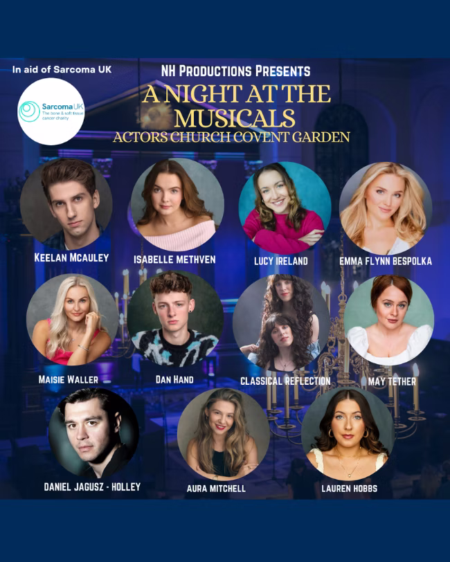 NH Productions Presents: A Night at the Musicals - Join us at the Actors' Church for an unforgettable evening of musical theatre classics, featuring incredible West End performers and choirs. All proceeds in aid of Sarcoma UK. Don’t miss this magical night of musicals.