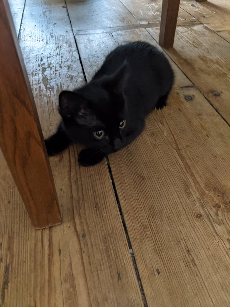 Eliza loves visitors and will happily say hello. She loves a good stroke. She can often be found sleeping in a sunny patch above the doorframes in the narthex.